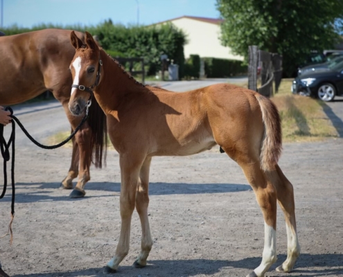 Selle Francais, Femelle, Alezan Par UNTOUCHABLE (NLD) Alias UNTOUCHABLE 27 KWPN et ASTUCE DES TOURELLES SF par CALVARO (DEU) Alias NISSAN CALVARO Z HOLST
